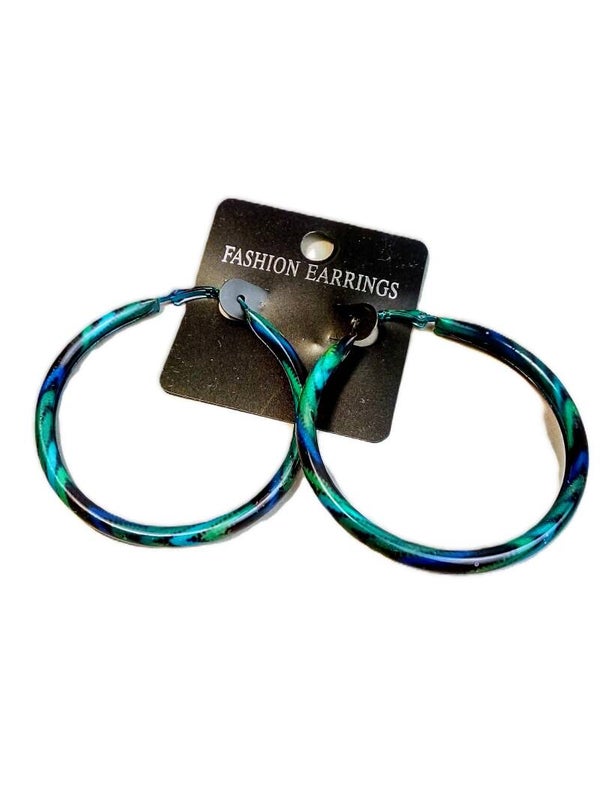 Boucles d'oreilles, CREOLE VERTES STYLE ANNEES 80 VINTAGe, acier inoxydable.